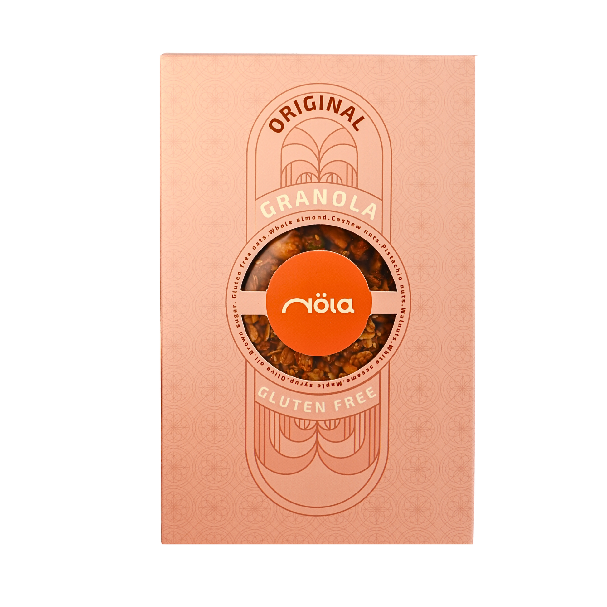 Gluten Free Oats, whole almond, cashew nuts, pistachio nuts, walnuts, white sesame, maple syrup, olive oil, brown sugar.